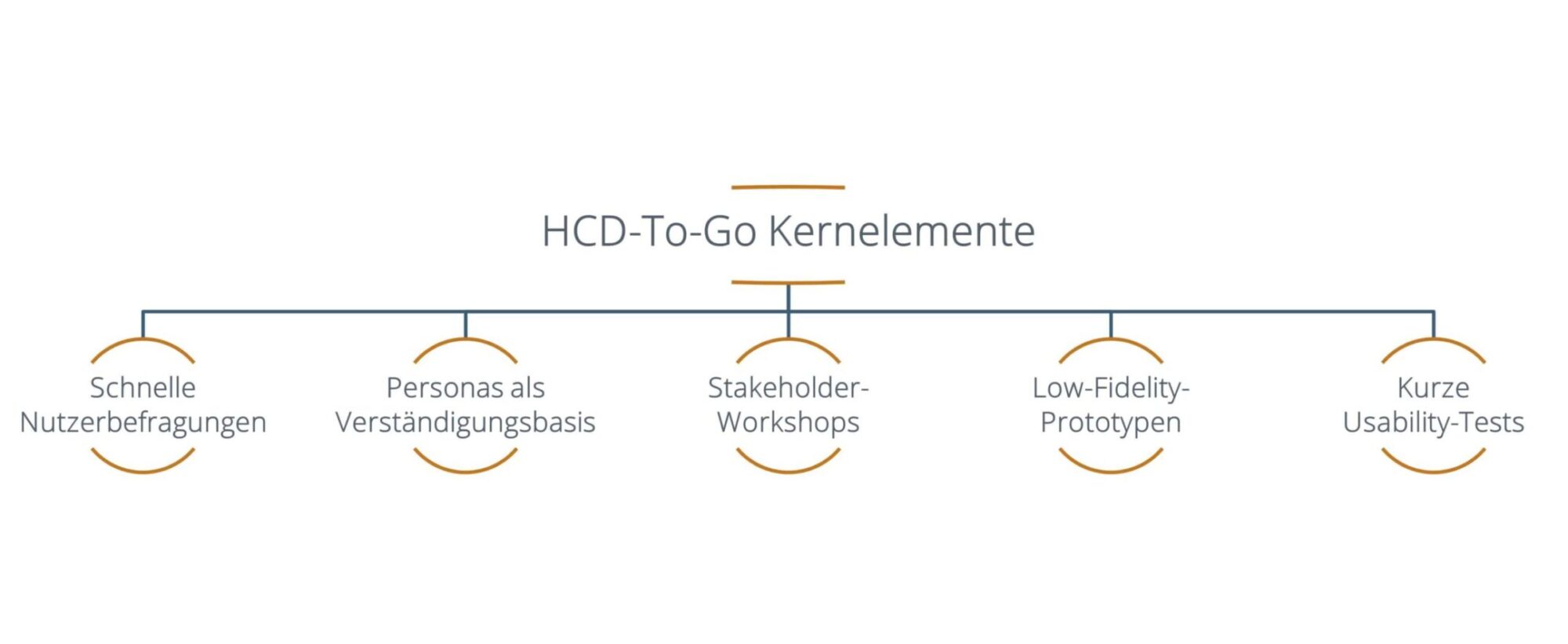 HCD-To-Go ist unser methodischer Rahmen, um Human-Centered Design fest in Entwicklungsprozesse zu verankern. Der Ansatz basiert auf vier Prinzipien: